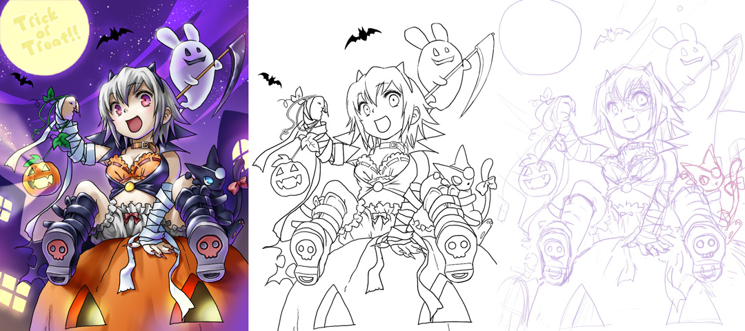 しまぱんイラストとハロウィンイラスト、ゴスロリ娘が片付いたので、